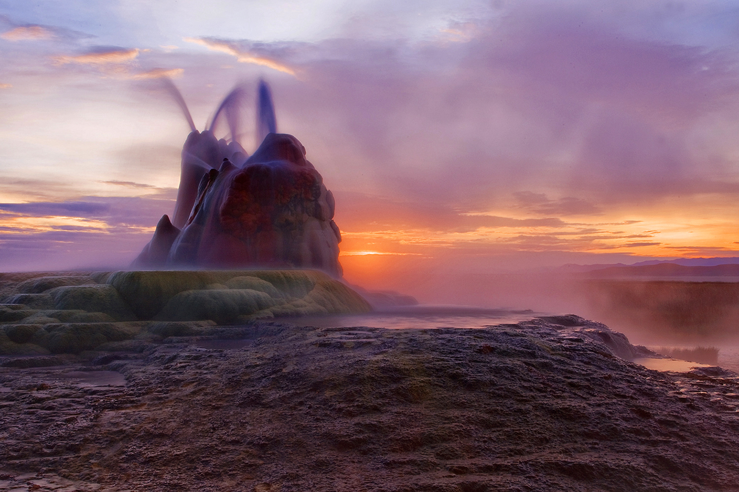 the passing of time. Layer upon layer building skyward, this leaking geothermal well spews a