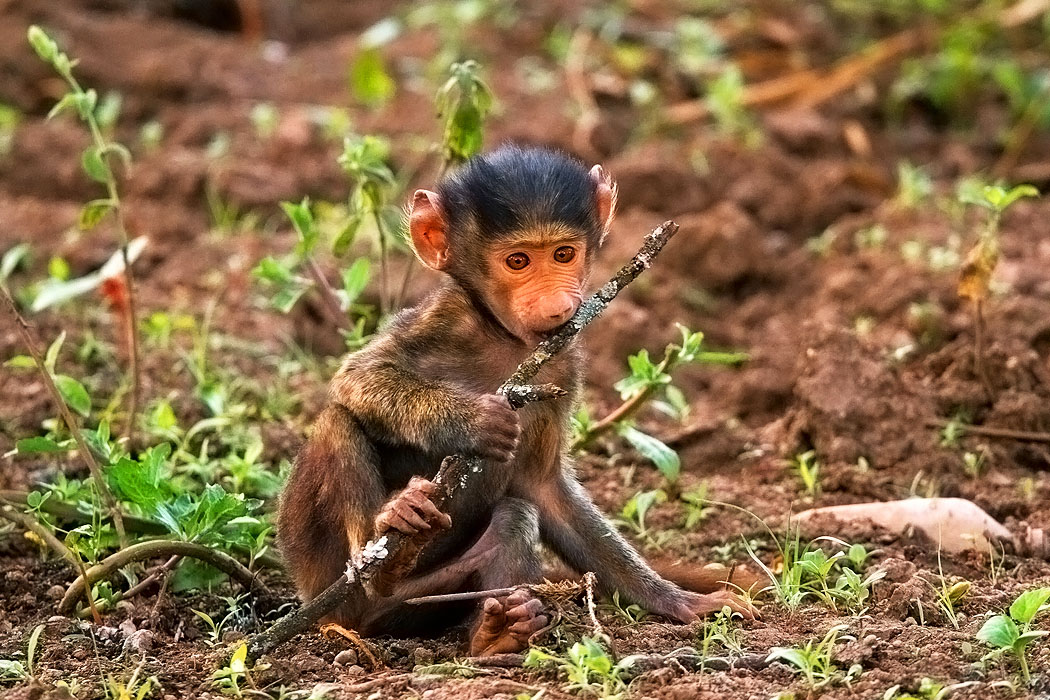 Taken at Lake Nakuru, Kenya, Africa, this alert and precocious baby baboon is estimated to be only a couple weeks old. Its day was spent running around expending a lot of energy, learning about its new world.