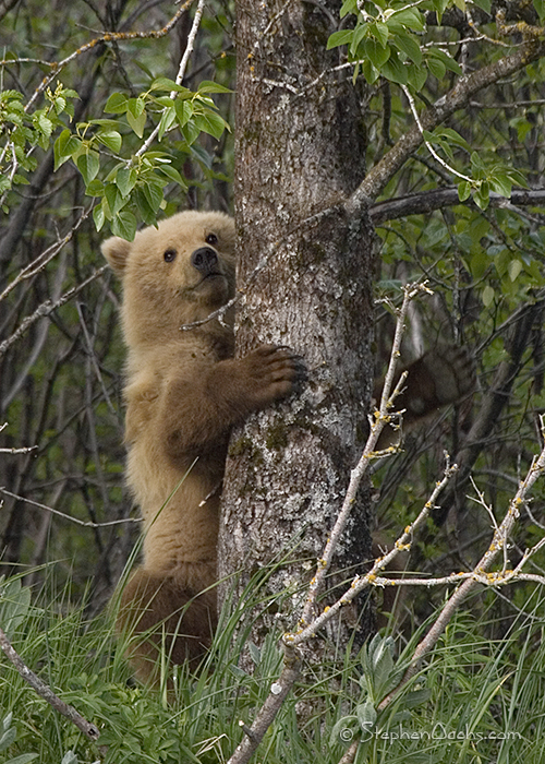 Within 15 minutes, we came across a bear named "Blondie." Aptly named for her light coloring, Blondie was a 600 lb. grizzly sow with two, two-year-old cubs. They where playing and climbing in a Cottonwood tree, which, according to Kevin, is rarely seen.