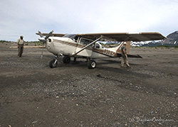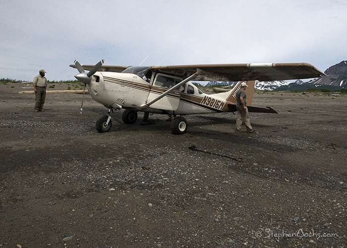 At 1pm, our group boarded a Cessna 206 Super Skywagon for our flight to Hallo Bay. As I crawled in through the pilot's door and across to my seat, I couldn't help but notice the plane had clearly made this flight many, many times before...and then some. While I tightened the belt across my lap, our young pilot, Zack, jumped in, started the engine and began to taxi us out to the runway.