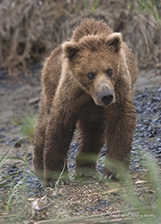 We sat for about an hour observing and photographing the bears when "Scooby" drew closer. According to Kevin, Scooby is a sub-adult boar, very curious and always testing to see what he can get away with. Scooby often tries to approach sows, but with little success, often being chased away. But as we sat there, he became more curious about us and began to approach. Scooby came within about 20 yards, smelling the air and pacing, clearly uncertain if we were a threat or a meal. Kevin stood again and let Scooby know we did not want him to approach, which worked, and Scooby went on his way.